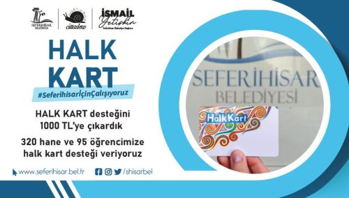 Yaklaşık 5 yıldır devam eden Halk Kart ile ihtiyaç sahibi vatandaşlar Seferihisar Belediyesi Halk Marketleri’nden ucuz ve organik ürünleri satın alarak, mutfak masrafından kurtuluyor. Belediye Halk Kart ile ilçedeki 320 hanenin ihtiyacını karşılarken, 95 üniversite öğrencisine de eğitim desteği sağlıyor.