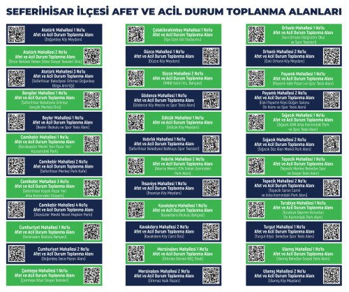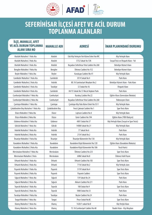 Seferihisar Belediyesi, ilçe genelindeki, afet ve acil durum toplanma alanlarını güncelledi.