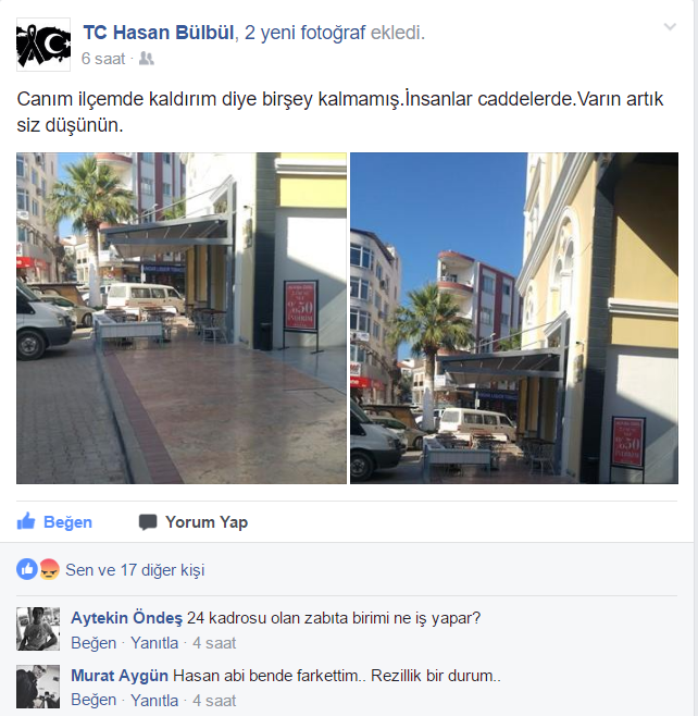 İlçe sakinleri kaldırımları işgal eden işyeri sahiplerinin yanısıra Seferihisar Belediyesi ve Başkan Tunç Soyer'e de sosyal medyadan tepkilerini gösterdiler. Vatandaşın yürüyeceği kaldırımların işgal edilmesi sonucu insanların yoldan yürüdüğünü belirten Seferihisarlılar, suçun belediyede olduğu, esnafa sorulduğunda biz işgaliye parasını ödüyoruz dedikleri belirtildi. Ayrıca bazı vatandaşlar da belediye zabıtalarının liyakat usulü seçilmediği ve torpille işe alındıkları, bu yüzden de işlerini yapmadıklarını iddia ettiler.