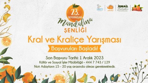 Seferihisar’da, geleneksel hale gelen mandalina şenliği, bu yıl 23’üncü kez düzenleniyor. Seferihisar Belediyesi tarafından düzenlenecek şenlikte; birbirinden eğlenceli etkinliklere, dans gösterilerine, ikramlara ve yarışmalara yer verilecek.