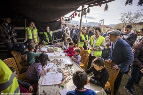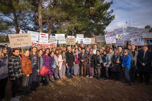Başkan Tunç Soyer’i alanda “Yetti gari”, “Zeytin Ağaçları Yalnız Değildir”, “Tarım Alanlarımızın Yok Olmasına İzin Vermeyeceğiz”, “Zeytinliklerdeki Kuşlar Nefes Almak İstiyor” yazılı dövizler karşıladı. Törende konuşan Başkan Soyer, “Zeytin fidanı dağıtımına başlarken amacımız aslında meclise intikal eden ‘Zeytinliklerin Madene Açılması’yla ilgili yasa tasarısının iptalini dillendirmek, onunla mücadele etmekti. Çok şükür geri adım attılar yine vazgeçtiler. Bunun heyecanını yine beraber paylaşalım. Onlar defalarca deniyorlar. ‘Acaba direnç görmezsek bu defa başarır mıyız?’, ‘Direnç görmezsek zeytinlikler madene açılır mı?’ diye uğraşıp duruyorlar. Biz buna izin vermeyeceğiz” dedi.