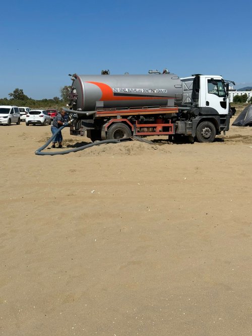 Saatler sonra 15.40 sıralarında gelen vidanjör, rögar kapağının plaj kumlarının arasında olmasından dolayı kuma saplanmasıyla uzun uğraşlar sonucu iş makinesiyle çekildi. Temizleme işleminin ardından vatandaşlar tuvaletlerdeki kilitli kapıların açılmasını bekledi ancak atıklar çekilmesine rağmen tuvalet, 16.20 sıralarında vatandaşlara açılabildi.