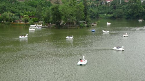 Trabzon'da yeşil bir vadinin içinde yer alan Sera Gölü, Arap turistlerin gözdesi haline geldi. Göldeki deniz bisikleti yoğunluğu ise dikkat çekiyor.