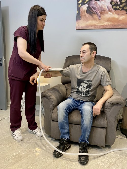 MS hastası olan Serdar Ortaç, Ağrısız Hayat Merkezi'nde elektromanyetik alan cihazı ile tedavi görmeye başladı.