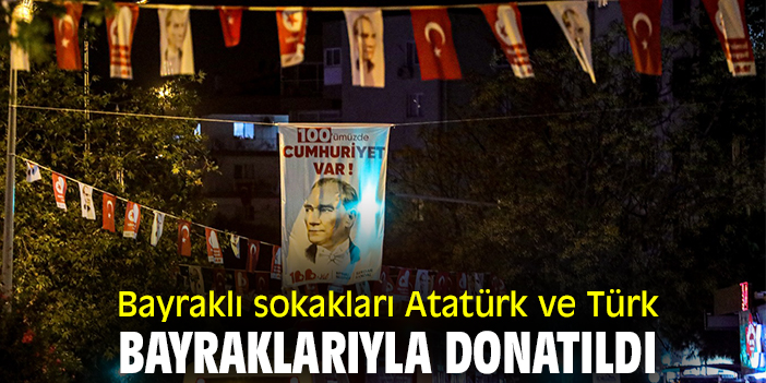 Bayraklı sokakları Atatürk ve Türk bayraklarıyla donatıldı