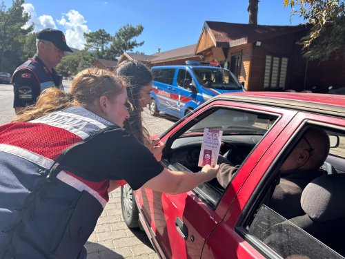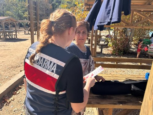 Aydın İl Jandarma Komutanlığı Aile İçi Şiddetle Mücadele ve Çocuk Kısım Amirliği personellerince Kuşadası’nda bilgilendirme çalışması gerçekleştirildi. Dilek Yarımadası Milli Parkı’nı ziyarete gelen vatandaşlarla görüşen ekipler, ‘Kadına El Kalkamaz’ mottosu kadına karşı şiddete dikkat çekerken, KADES uygulamasını tanıttı. Tanıtım ve bilgilendirme faaliyetinde bulunan ekipler, çocuklara da Türk bayrağı, Jandarma Çocuk dergisi ve boyama kitabı hediye etti.