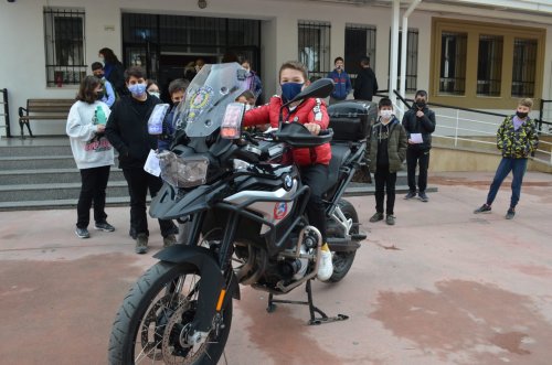 Etkinlik Fatma Günay Ortaokulu ziyareti ile başladı ve proje kapsamında okuldan belirlenen 15 öğrenci ile 2 öğretmen polis otobüsüne bindirilip eskort eşliğinde İlçe Emniyet Müdürlüğü’ne götürülüp görevli 1 erkek ve 1 bayan polis memuru tarafından polislik mesleği hakkında bilgiler verildi. Daha sonra ise, çocuklara İlçe Emniyet Müdürlüğü binası gezdirilip öğrenciler polis motosikletlerine bindirildi.