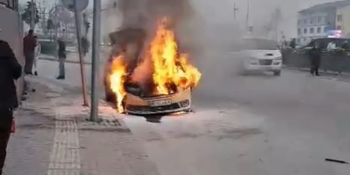 Bursa’da seyir halindeki ticari taksi, motor kısmından alev alması sonucu büyük hasar gördü.