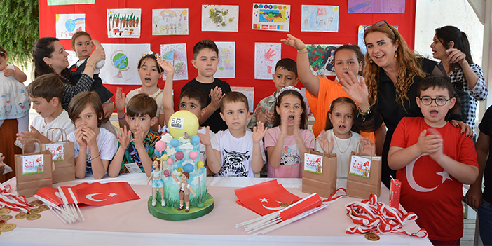 Hep bir ağızdan İzmir Marşı'nı söyleyip, pastalarını kesen çocuklar, anne ve babalarının işyerlerinde bir aktiviteye katılmaktan çok mutlu olduklarını dile getirdiler.