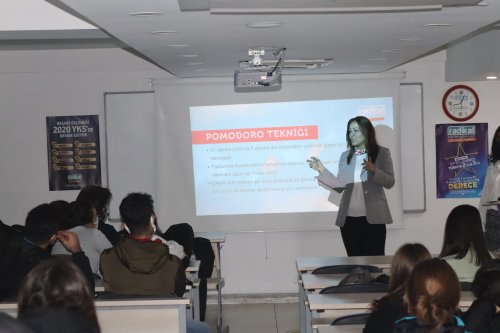 Radikal Eğitim Kurumları Rehberlik Koordinatörü Mürüvvet Toksoy Çiftçi, bünyesindeki öğrencilerine verdiği seminerler zincirinde zamanı nasıl etkili kullanacaklarını öğretti. Çiftçi, sınava girecek olan öğrencilerin psikolojik çalışma ritmini hiç sıkılmadan ve yorulmadan nasıl yakalayacaklarının ipuçlarını verdi. İtalyanca’da domates anlamına gelen ve günümüzde de çokça kişinin kullandığı Pomodoro tekniğini öğrencilere anlatan Çiftçi, bu teknik ile etkili ve verimli bir çalışma gerçekleşebileceğine vurgu yaptı.