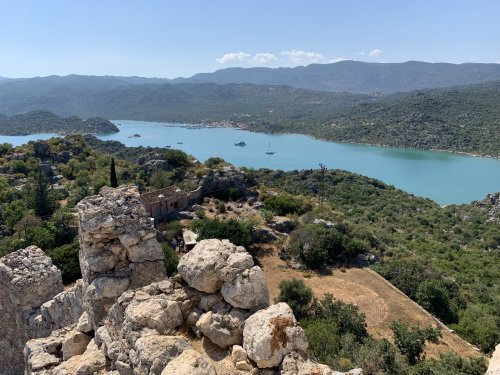 Ve zirve.. Simena Kalesinden tüm Kaleköy ayaklarınızın altında hatta arkanızı döndüğünüz zaman yola çıktığınız ilk liman olan Üçağız Limanını da görmeniz mümkün. Zirvede bir nebze esen rüzgar yorgunluğunuzu alıyor. Tabi bol bol fotoğraf çektirmek istiyor insan. Manzara anlatılmayacak kadar muhteşem. Doğanın bize sunduğu eşsiz bir tablo daha.