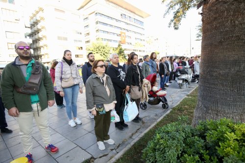Yüzlerce vatandaşın katıldığı Hükümet Konağı önündeki törende Atatürk Anıtı’na çelenkler sunuldu. Saatler 09.05’i gösterdiğinde hem tören alanındaki katılımcılar hem de cadde ve sokaklardaki vatandaşlar, Ulu Önder Atatürk için saygı duruşuna geçti. 1 dakikalık saygı duruşu boyunca Karşıyaka’da yaşam, adeta durdu. Siren ve korna sesleri ilçenin dört köşesinde yankılanırken, duygu dolu anlar yaşandı.