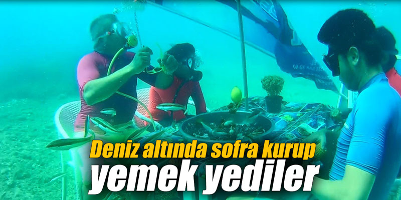Deniz altında sofra kurup yemek yediler