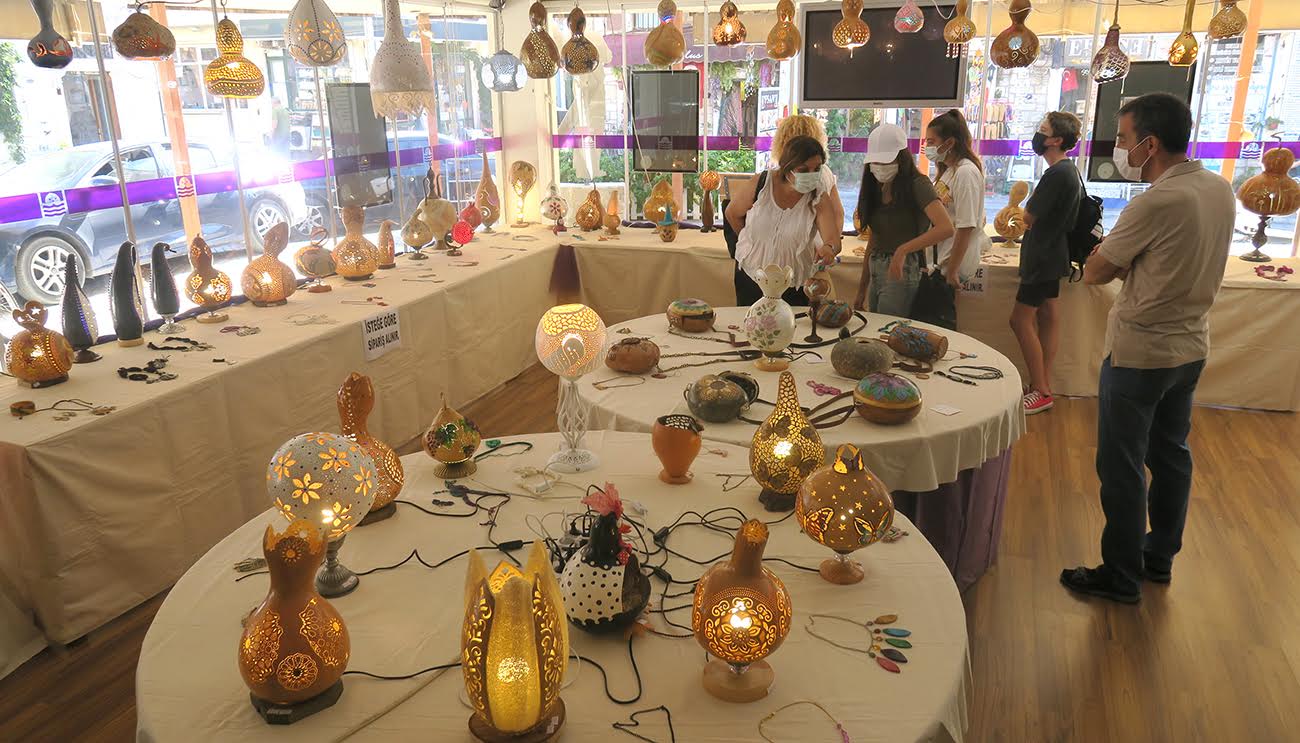 Bikabak Foça Moru Grubu üyelerinin su kabağı işlemeciliği sergisi, 13-18 Ağustos tarihlerinde Foça Belediyesi Reha Midilli Kültür Merkezinde açıldı.