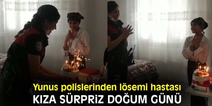 Yunus polislerinden lösemi hastası kıza sürpriz doğum günü