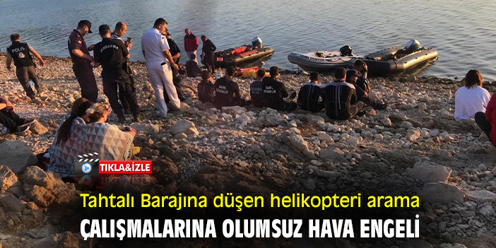 Menderes'te meydana gelen orman yangınına müdahale eden helikopterin su aldığı esnada Tahtalı Barajı'na düşmesinin ardından yapılan kurtarma çalışmalarına olumsuz hava şartları nedeniyle ara verildi.
