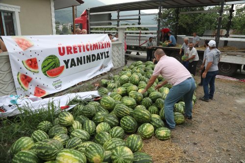 Samsun Atakum Belediyesi ile Samsunspor taraftar gruplarının Bafra’daki karpuz üreticisine destek olmak için “Karpuz tarlada kalmasın” sloganıyla başlattığı ve 10 günde 400 ton karpuzun vatandaşlara ulaştırıldığı dayanışma kampanyası büyüyor. Özören Mahallesi’nden başlayıp diğer mahallelere ulaştırılan karpuzlara vatandaşlar yoğun ilgi gösterdi.