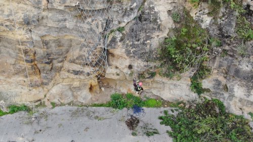 Yüklenici firma tarafından profesyonel dağcıların da yardımıyla kayaların üzerine sarkıtılan çelik ağlar, 10 metrelik çivilerle kayalara sabitlenecek. Bu sayede kayaların üzerine yapılan çelik örtülemeyle en büyük kaya parçalarına dahi ağlar güçlendirilecek.
