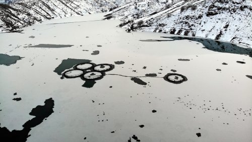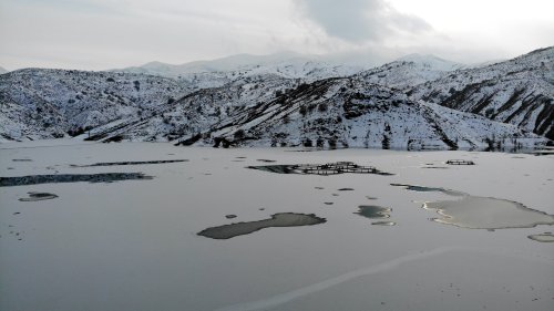 Yaz mevsiminde tarım arazilerinin sulamasında kullanılan, aynı zamanda kafes balıkçılığı da yapılan barajda, balık kafesleri buz kütlesinin altında kaldı. Kar yağışının olmadığı ancak gece saatlerinde etkili olan soğuk hava nedeniyle Doğu Anadolu Bölgesi'ndeki, dere, çay ve barajlar dondu.
