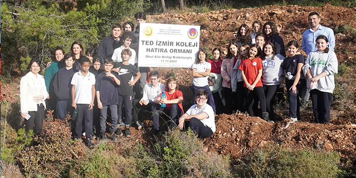 TED İzmir Koleji öğrenci ve öğretmenleri, geçen yıl toplanan fidan bağışlarıyla bu yıl hatıra ormanı oluşturdu. Öğrenciler, öğretmenleri ile birlikte Urla Zeytinalanı Şirinkent Mahallesi mevkiinde 800 adet mavi ve kara servi, kızılçam ve fıstıkçamı fidanlarını toprakla buluşturdu. Geleceğe daha fazla yaşanacak bir dünya bırakma hedefiyle ilerleyen TED İzmir Koleji, yeni oluşturulan hatıra ormanının temellerini Okul Aile Birliği’nin değerli katkılarıyla attı.