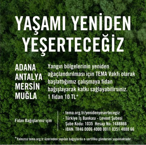 Tema Vakfı, yangın bölgelerinin yeniden ağaçlandırılması için "Yaşamı Yeniden Yeşerteceğiz" kampanyası başlattı. Belediye başkanları da birer birer bu kampanyaya katılarak birbirlerini de katılıma davet etmeye başladı.