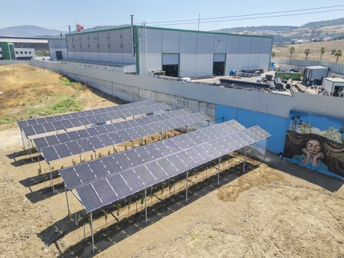 Azra Galvaniz, Tarım GES olarak bilinen Agrivoltaik Güneş Enerji Sistemi projesini hayata geçirdi. Projeyle güneş enerjisi panellerinin gölgesinde yapılan tarımsal üretimin verimliliği damla sulama sistemiyle artırılırken, su israfının da önüne geçiliyor.