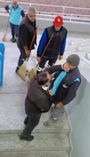 Buca'da TJK Şirinyer Hipodromu'nda bir temizlik işçisi, görevini yaptığı esnada bir kişinin tokatlı saldırısına uğradı. O anlar cep telefonu kamerasına yansırken, temizlik personeli karakola giderek saldırgandan şikayetçi oldu.
