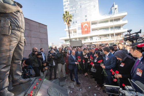 İzmir Cumhuriyet Başsavcısı Fahri Mutlu Tosun ise “Ülkemizi hedef alan terör örgütlerinin hepsi aynı hedefi taşıyor. Birlik beraberliğimizi bölmeye çalışan bir plan yapılıyor. Başta hakim ve savcılar olmak üzere bütün kamu çalışanlarıyla terörle mücadelemize devam edeceğiz. Şehitlerimizden aldığımız feyz ile milletimizin hukuki güvenliği için hiç durmadan çalışacağımıza burada söz veriyorum” diye konuştu.