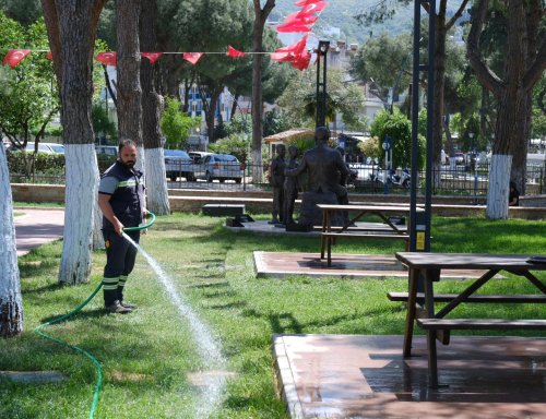 Tire Belediyesi Park ve Bahçeler Müdürlüğü ekipleri, ilçeyi titiz bir çalışmayla yaz sezonuna hazırlıyor.