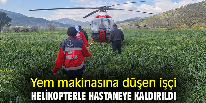 Yem makinasına düşen işçi helikopterle hastaneye kaldırıldı