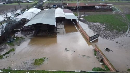 İzmir'de 3 gündür devam eden yoğun yağışlar sonucunda Tire'de yeraltı barajı taştı. Meydana gelen taşkın sonucunda birçok tarla, çiftlik ve yol sular altında kaldı.