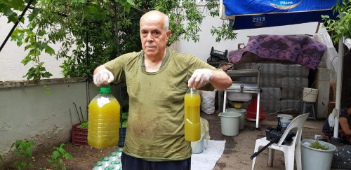 "Biz bunları tek tek ayıklıyoruz. Sapından ayırıyoruz. Ondan sonra onu iki yada üç kere yıkıyoruz. Makinadan geçiriyoruz. Makinadan geçirdiğimiz koruğu bir kere tülden geçiriyoruz. Bu birinci aşama. İkinci aşamada; şekerliyoruz, sulandırıyoruz. Tekrar tülbentten geçirip kıvamına getiriyoruz. Sonra tekrar süzgüden geçirerek şişeleme işlemini gerçekleştiriyoruz. İçime hazır kıvamda buzdolaplarında saklıyoruz. Alan arkadaşlar bunu çalkalayarak tüketir. İçerisine tekrardan ne su ne şeker ilave gerekmiyor. Biz tam kıvamında bunun satışını sunuyoruz. Normal bir buzdolabında 2 gün dayanır. İçinde koruyucu madde olmadığı için bu süre kısadır. Ama dipfrizde donduktan sonra yıllarca saklanabilir."