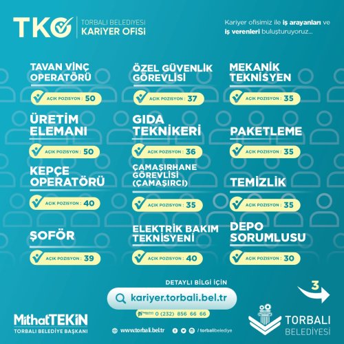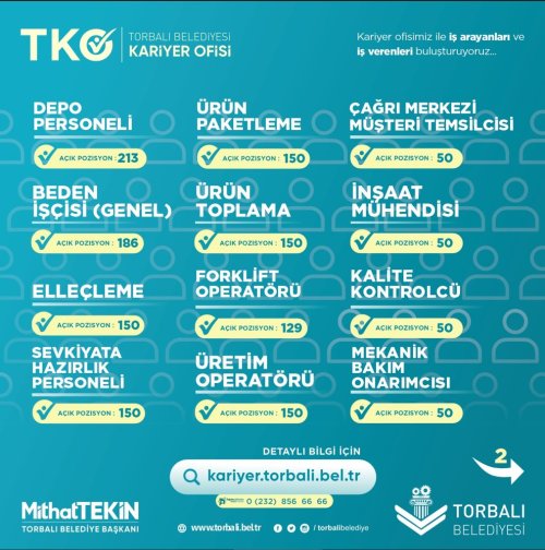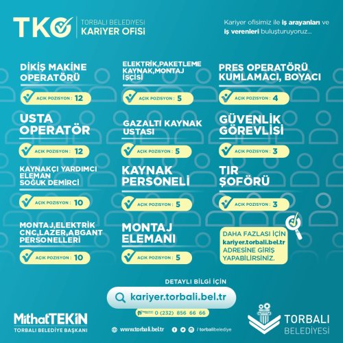 https://kariyer.torbali.bel.tr adresli web sitesi aracılığıyla iş arayanlar burada cv oluşturup, mevcut iş ilanlarına başvuru yapabiliyor. İşverenlerin de aktif olarak kullandığı bu uzantı sayesinde yüzlerce kişi iş sahibi oldu.