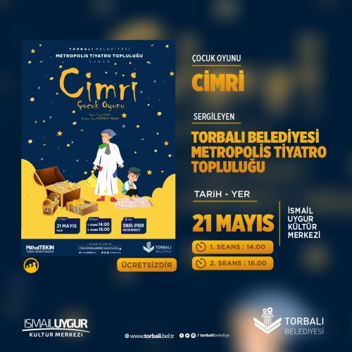 MEDYA EGE - Torbalı Belediyesi İsmail Uygur Kültür Merkezi, sosyal medya hesabından 'Cimri' adlı çocuk oyununun sahneleneceğini duyurdu.