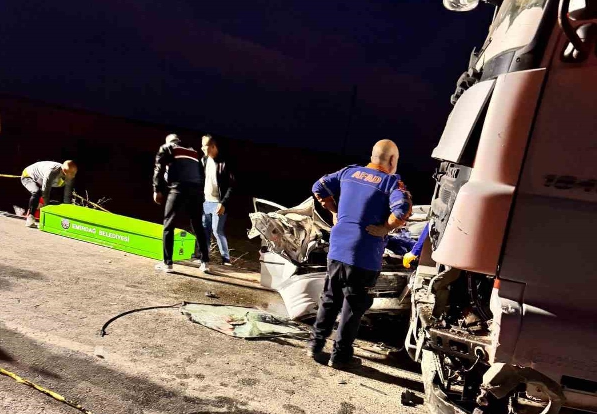 Edinilen bilgiye göre Kaza, Emirdağ ilçesi Salihler köyü yakınlarında meydana geldi. H.A. idaresindeki 03 AAC 933 plakalı tır, N.B.’nin kullandığı 26 PY 170 plakalı otomobille çarpıştı. Kazanın ardından bölgeye çok sayıda jandarma ve itfaiye ekibi sevk edildi. Kazada otomobil sürücüsü ile yanında bulunan F.B. (84) olay yerinde hayatını kaybederken, L.B. ve G.B. ise yaralandı. Hayatını kaybedenlerin cansız bedenleri ile yaralılar, ekiplerin yaklaşık yarım saatlik çalışması sonucu sıkıştıkları yerden çıkarılabildi. Hastaneye kaldırılan yaralılardan G.B. de yapılan müdahalelere rağmen kurtarılamayarak yaşamını yitirdi.Kazayla ilgili soruşturma başlatıldı.