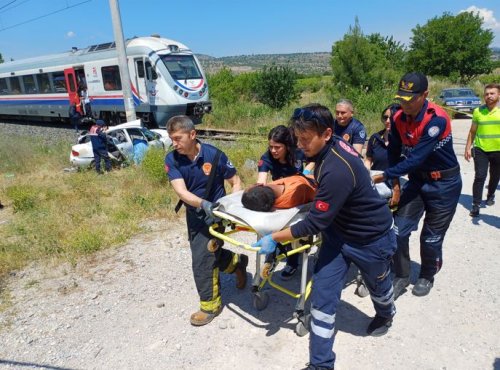Uşak-İzmir seferini yapan yolcu treninin hemzemin geçitte otomobile çarpması sonucu 1 kişi hayatını kaybetti.
