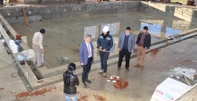 Turgutlu’nun Ergenekon Mahallesi’nde yükselen Kapalı Yüzme Havuzu ve Spor Salonu inşaatında sona yaklaşıldı. Turgutlu Belediye Başkanı Turgay Şirin de Manisa Büyükşehir Belediyesi Turgutlu Koordinasyon İşleri Şube Müdürü İbrahim Kutar ile birlikte spor kompleksinin son durumunu inceledi. Manisa Büyükşehir Belediyesi ve Turgutlu Belediyesi’nin eşfinansman desteğiyle yapılan spor kompleksinin Turgutlu’ya çok yakışacağını ifade eden Başkan Şirin, inşaat çalışmalarının tamamlanmasının ardından dış cephe ve iç donanımlarına başlanılacağını dile getirdi. Hava muhalefetine rağmen projenin hızla devam ettiğini belirten Başkan Şirin, tesisin havuz, salon, idari bina ve diğer bölümlerini tek tek inceledi.