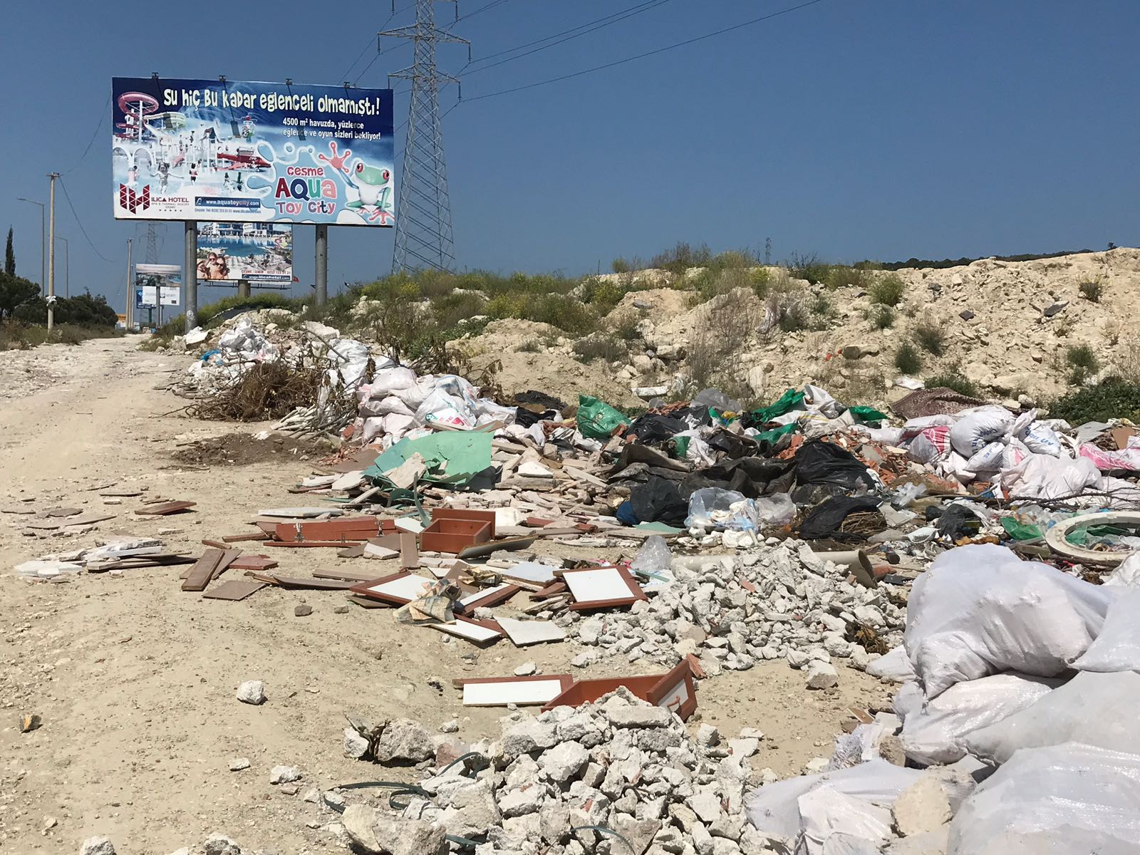 Yıllardır temizlik sorununa bir türlü çözüm getiremeyen Çeşme Belediyesi, bu sezon başında da vatandaşları ve esnafı isyan ettirdi. İlçenin otobanla giriş kısmında bulunan arazilerinde çöp ve moloz yığınları biriken ilçede yaşayanlar belediyenin ilgisizliğinden şikayetçi. Buraya çöp ve moloz döküldüğünü belirten vatandaşlar denetim eksikliğinden şikayet ederken, bırakılan çöp ve molozun belediye ekipleri tarafından temizlenmediğini de ifade ediyorlar.