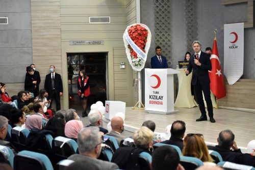 Türk Kızılay’ın ihtiyaç sahiplerine destek olma adına her geçen gün daha da büyüdüğünü ifade eden Türk Kızılay İzmir Şubesi Başkanı Kerem Fahri Baykalmış, “Ukrayna Rusya arasında bir savaş çıktı. Kızıl Haç dahil tüm dünya seyrederken biz Türk Kızılay’a olarak 5 yardım tırını bölgeye gönderdik bile. Bunu sizlerin sayesinde yapıyoruz. Bornova Belediye Başkanı Dr. Mustafa İduğ’a da her zaman bizimle olduğu ve genele kurulumuza ev sahipliği yaptığı teşekkürlerimi sunuyorum” diye konuştu.