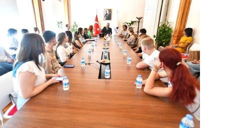 İzmir Büyükşehir Belediyesi Başkan Vekili Mustafa Özuslu Almanya’nın Bremen kenti ile İzmir Konak Anadolu Lisesi arasında yürütülen “Gençlerin Göçe Bakış Açısı” projesindeki öğrenci ve öğretmenleri ağırladı.