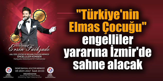 "Türkiye'nin Elmas Çocuğu" olarak bilinen dünyaca ünlü sanatçı Ersin Faikzade, Asil Özel Eğitim ve Rehabilitasyon Merkezi'nin düzenlediği engelliler konserinde konser verecek. Engelliler yararına düzenlenen organizasyonda birbirinden güzel şarkılarla kendisini dinlemeye gelenlere unutulmaz bir gece yaşatacak.