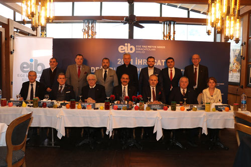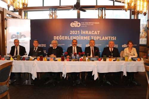 Ege Yaş Meyve Sebze İhracatçıları Birliği Başkanı Hayrettin Uçak’ın “2021 Yılı İhracat Değerlendirme Toplantısı”na, Ege İhracatçı Birlikleri Koordinatör Başkanı Jak Eskinazi, Ege Kuru Meyve ve Mamulleri İhracatçıları Birliği Başkanı Birol Celep, Başkan Yardımcısı Mehmet Ali Işık, Ege Su Ürünleri ve Hayvansal Mamuller İhracatçıları Birliği Başkanı Bedri Girit, Ege Yaş Meyve Sebze İhracatçıları Birliği Yönetim Kurulu Başkan Yardımcısı Cengiz Balık, Yönetim Kurulu üyeleri Emin Demirci, Sadık Demircan, Mehmet Ata Özdemir, Emin Demirci, Martin Sanford, Türkmen Türkmeoğlu, Denetim Kurulu Üyeleri Aydın Yıldırım ve Kenan Unat katıldı.