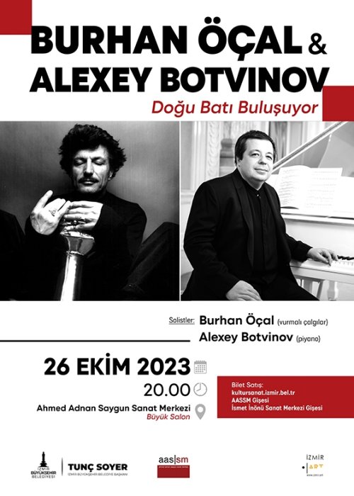 Dünyaca tanınmış perküsyon virtüözü Burhan Öçal ve Ukraynalı ünlü piyano virtüözü Alexey Botvinov'un Doğu Batı Buluşuyor (East meets West) başlığı ile gerçekleşecek olan dünya müziği kategorisindeki konserinde, Bach, Beethoven, Rachmaninov, Mussorgsky, Prokofiev ve Philip Glass gibi önemli bestecilerin seçkin yapıtları farklı yorumla ele alınacak.