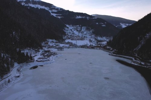 Uzungöl, Doğu Karadeniz Bölgesinde etkili olan soğuklar sonrası buz tuttu.