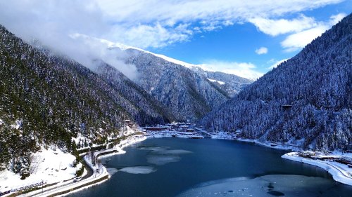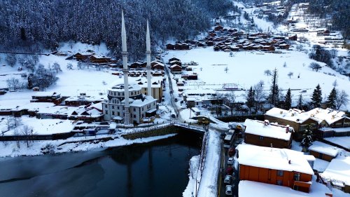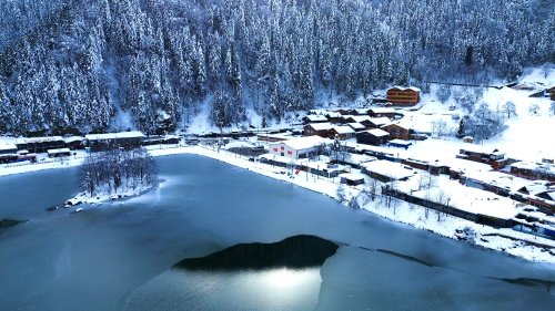 Trabzon'da, Karadeniz'in simge noktalarından biri olan Uzungöl'deki kartpostallık görüntüler ziyaretçileri büyüledi. Kar kalınlığının 60 santimetreye ulaştığı bölgede keyifli anlar yaşadı.
