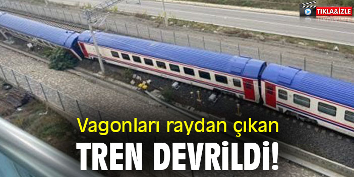 Kocaeli'nin Gebze ilçesinde trenin test sürüşündeyken makas geçişi sırasında 2 vagonu raydan çıkarak devrildi.