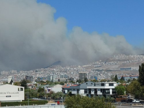 İzmir'in Karşıyaka ilçesinde Yamanlar Dağı'nda devam eden yangın, rüzgarın da etkisiyle büyüdü ve yerleşim yerlerine yaklaştı. Yangından çıkan dumanlar ise şehir merkezini kaplarken, yangın şehrin her ilçesinden görülüyor.