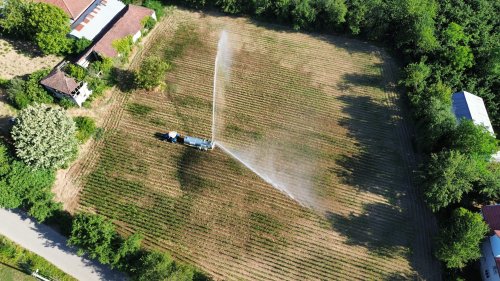 Düzce'de hava sıcaklıklarının 35 dereceyi aşmasıyla birlikte, çiftçiler mahsullerinin zarar görmemesi için çeşitli çalışmalar yapıyor. Sulama sistemleri ile tarlalarına su verenlerin yanı sıra, tarlalarının yakınında su kaynağı bulunmayan çiftçiler ise çareyi yapay yağmur sisteminde buldu. Düzceli Muhlis Çiftçi, yaz aylarında çiftçilere destek olabilmek amacıyla 15 ton kapasiteli bir sulama tankı yaptı.