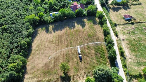 Sıcak havaların etkili olduğu Düzce'de, tarımsal ürünlerinin yanmasından endişe duyan çiftçiler, yapay yağmur yöntemiyle tarlalarına can suyu veriyor.