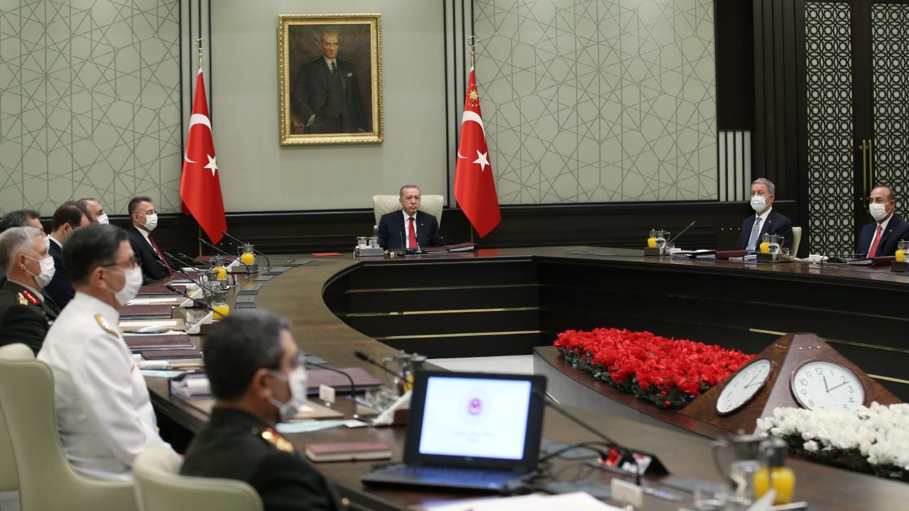 Cumhurbaşkanı Recep Tayyip Erdoğan’ın başkanlığında toplanan Yüksek Askeri Şura toplantısı sona erdi. Bugün Cumhurbaşkanlığı Külliyesi’nde Cumhurbaşkanı Erdoğan Başkanlığında yapılan 2021 yılı Yüksek Askeri Şura olağan toplantısında, Türk Silahlı Kuvvetlerinde görevli general/amiral ve albaylardan; bir üst rütbeye yükseltilecekler, görev süresi uzatılacaklar, kadrosuzluktan emekliye sevk edileceklerin durumları görüşülerek, Cumhurbaşkanı Recep Tayyip Erdoğan’ın onayı ile karara bağlandı.